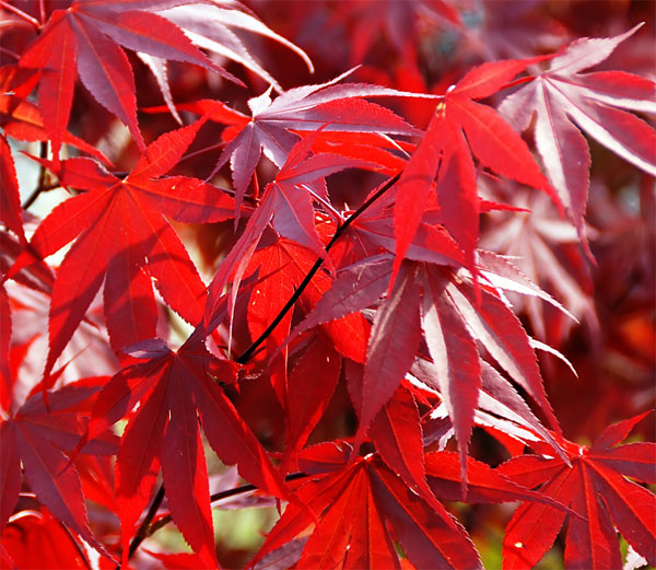 A beautiful and durable upright, red Japanese Maple. Spring leaves are bright red changing to darker red for summer. The leaf will get a red sheen on the back of the leaf, giving the tree a glowing appearance. The fall color is very bright red. A durable landscape tree that is one of the most popular of all Japanese Maples.