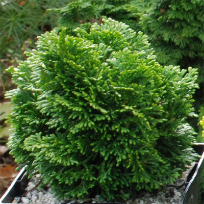 A miniature Hinoki Cypress. One of the most dwarf of all conifers. The deep green, congested foliage makes this cutie an excellent focal point in a small garden. Prefers sun/partial shade in well-drained soil. This variety is perfect for bonsai work, fairy gardens, and rock gardens.
