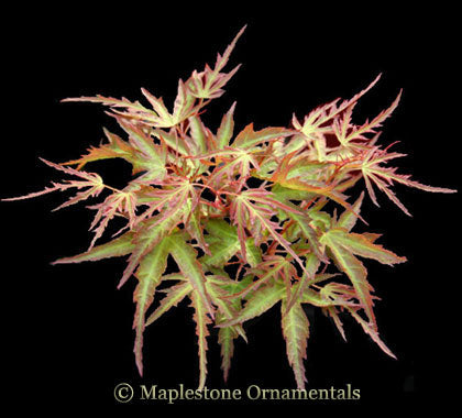An upright, dwarf Japanese Maple. 'Kamagata' is an old variety with incredible drought and heat tolerance. The small leaves droop down, giving a unique and delicate appearance. The spring color is green with wonderful red edging. The summer color is green which transitions to bright red for the fall. A popular variety for bonsai work. Discovered by renowned maple collector and author J.D. Vetrees.