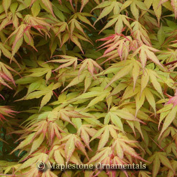 An upright growing Japanese Maple. This variety is similar to 'Katsura' but has a smaller mature size. It shows the same amazing bright orange-yellow spring color as 'Katsura'. The summer color is green before turning orange-red in the fall.
