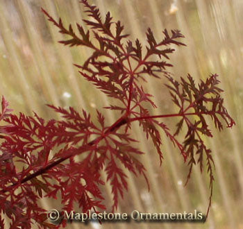 A dwarf, weeping lace-leaf Japanese Maple. The very finely dissected leaves set this variety apart. Somewhat rare in the trade. The spring color is bright red fading to bronze-red to green for summer. The fall color is deep red.