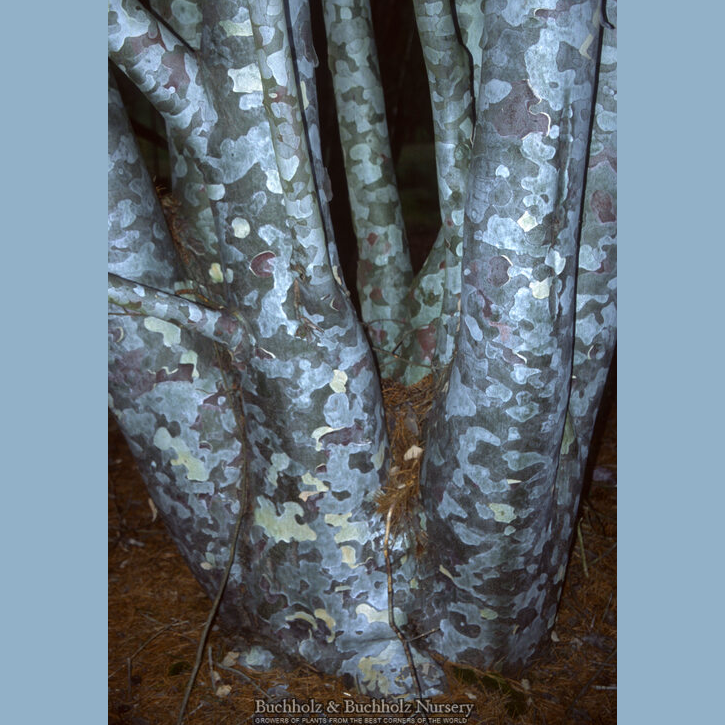 A unique variety of Lace Bark Pine. Selected and introduced by the Dawes Arboretum in Newark, Ohio. The outstanding feature is the bark, which is a patchy mix of grey and white. The branch structure is open, which reveals the colorful bark. Photo coutesy of Talon Buchholz. Used with permission.