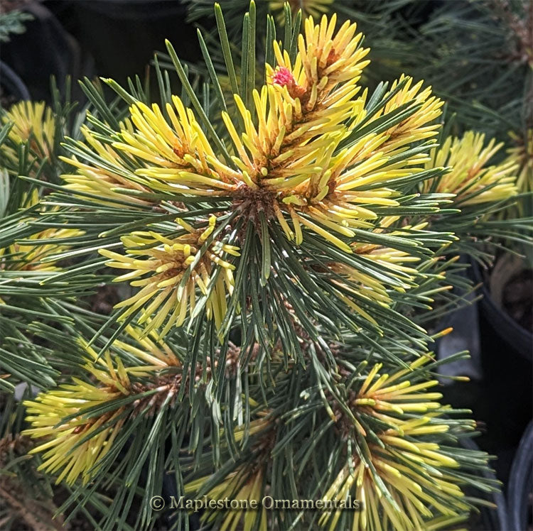 A rare and wonderful selection of Lodgepole Pine. The new growth in spring is a dazzling butter yellow, which contrasts with older green needles. Rare in the trade because of propagation difficulties. This tree was discovered in the Colorado Rockies by Alan Taylor.